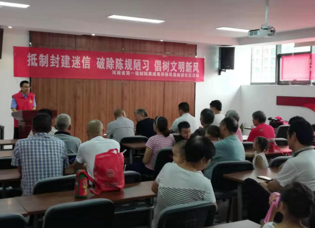 本网讯 (记者 魏健 通讯员 李超杰 郑州报道)为进一步深化移风易俗工作,倡导和培育社会文明新风尚,引导社区群众养成勤俭节约、文明高尚的生活方式,不断提升社会文明程度, 2019年8月8日,管城区十八里河街道办事处南刘庄社区党群服务中心联合河南省第一强制隔离戒毒所志愿服务队组织开展“ 破陈规 除陋习 传文明 树新风”移风易俗专题讲座。 图为居民与志愿者老师交流 志愿者老师向大家宣读了《移风易俗倡议书》,解读移风易俗的意义,收集了群众对于推进移风易俗工作的意见和建议。参会人员纷纷表示对推进移风易俗工作非常认可,认为此举即减轻了群众的经济负担,减少浪费,又摒弃了相互攀比的人际负累,纷纷表示愿意从我做起,婚事新办、丧事简办、其他喜事俭办,做移风易俗的带头人,带动身边的亲人、朋友、邻居自觉做文明新风的倡导者,鼓励他们破陈规、除陋习、传文明、树新风,促进社会良好风尚的形成。 ![]() 图为志愿者为居民讲解 本次活动的目的是为了让居民一起行动,共同努力,以实际行动移旧俗、除陋习,尚科学、树新风,让移风易俗之风吹遍全区每一个角落,让文明社区成为精神文明建设的一道亮丽风景!