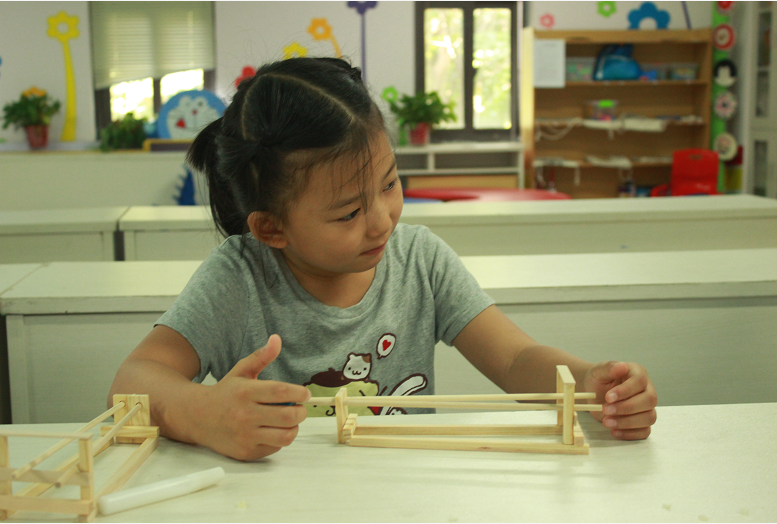课程首先通过小朋友们的回顾引入主题——物体总是以降低重心求稳定的,紧接着便利用社工提前做好的教具来验证这一原理,很快就有小朋友联想到科技馆也有类似的东西。然后小朋友们在社工的带领下自己动手制作双轨怪坡,虽然大家做得稍微有些歪歪扭扭,但是丝毫不影响大家的心情和实验结果。