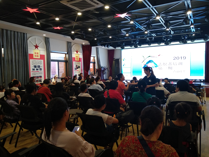 经过前期的策划和通知,2019年8月20日下午,祥和社区第一期志愿者培训在祥和剧场如期举行,首先由青益社工从志愿者是什么、志愿者可以做什么、志愿者管理制度、志愿者的激励办法、社工和志愿者的区别以及祥和社区目前的志愿服务项目等5个方面,为在场的青少年和家长通过PPT和案例的形式进行深入的讲解,增加大家对志愿者的认识和了解。最后,针对社工提出的几个与志愿者相关的问题,大家都较为积极的举手发言,现场气氛非常活跃。一位孩子家长说:“今天参加培训收获不少,让我了解了更多志愿服务内容,也了解的了社工和义工的区别。”